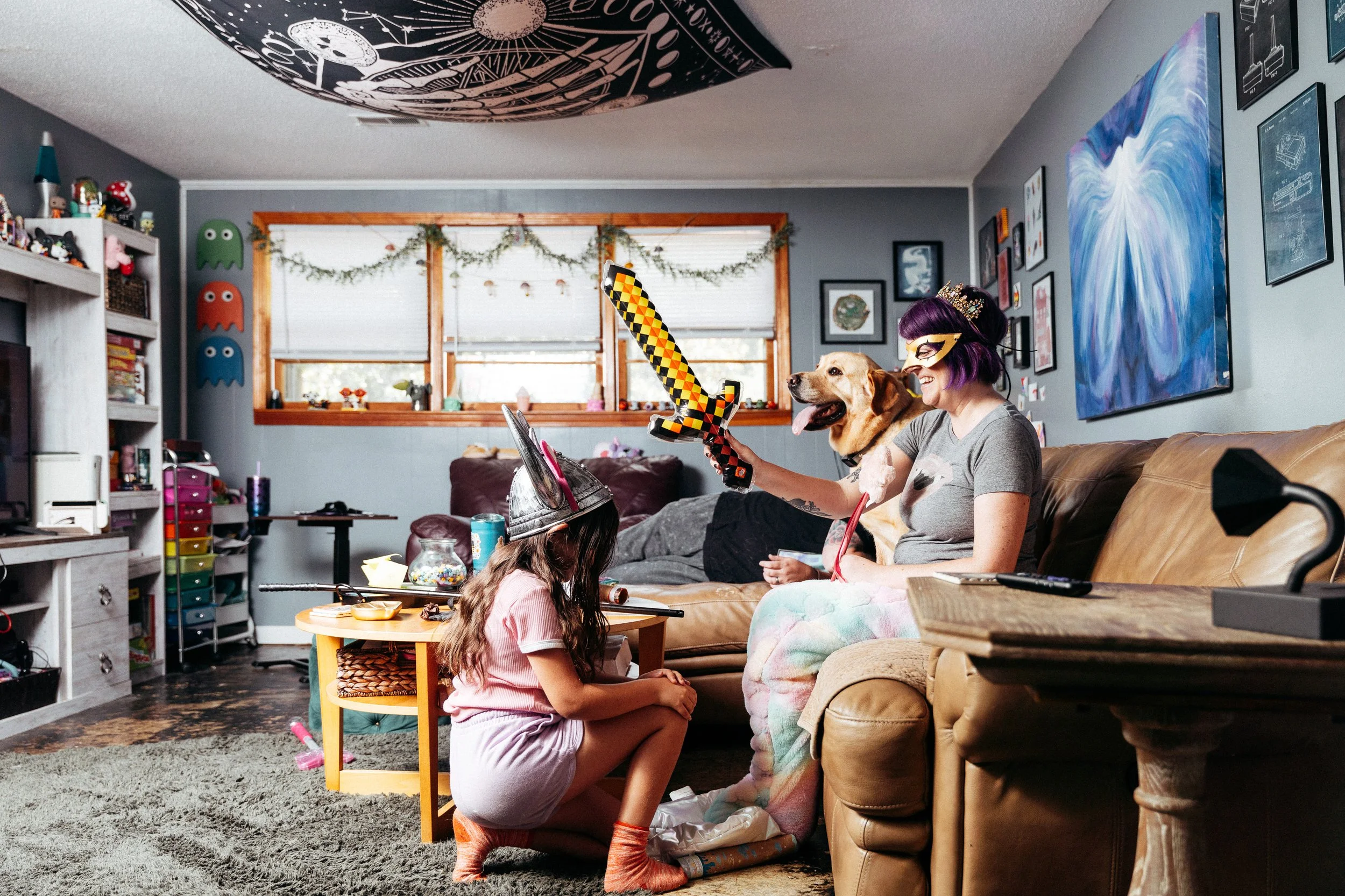 The Greenbergs don’t fit a mold. They’ve built something better, something true to them. Their world is fun, chaotic, intentional, and deeply loving. In a region where queer families often walk a tightrope between safety and erasure, they stand as a glowing, glittery example of what it means to live freely, fully, and without apology. Here, in this home, they are fully seen. This work is not just portraiture. It’s testimony. It’s invitation. It’s a reminder that love, when allowed to be weird and wild and wholly expressed, is its own form of protest. And celebration.